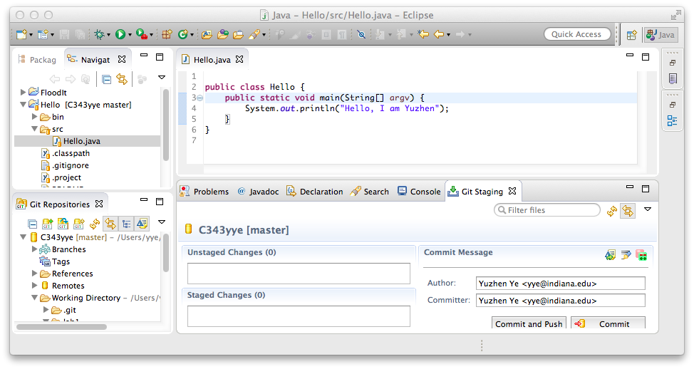 - [Recommended for this course] Use EGit (git integrated in Eclipse; All git functions can be done through Eclipse).