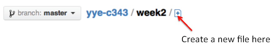 - If you really cannot get any of these work, you may create folders/files directly on github. Go to the destination folder in your repository (e.g., week2) and look for the "+" sign to create a new file (and a folder), as shown below.