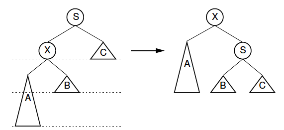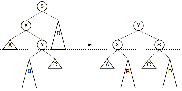 - Case 4: the new node is in the right child of the right child of S (right-right case).