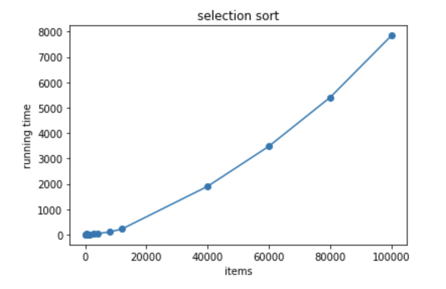 Selection sort works by finding the minimum of a list, then swapping that with the front element. You then find the minimum of the list starting at the second element, and swap that with the second element. This continues until the end of the list is reached.